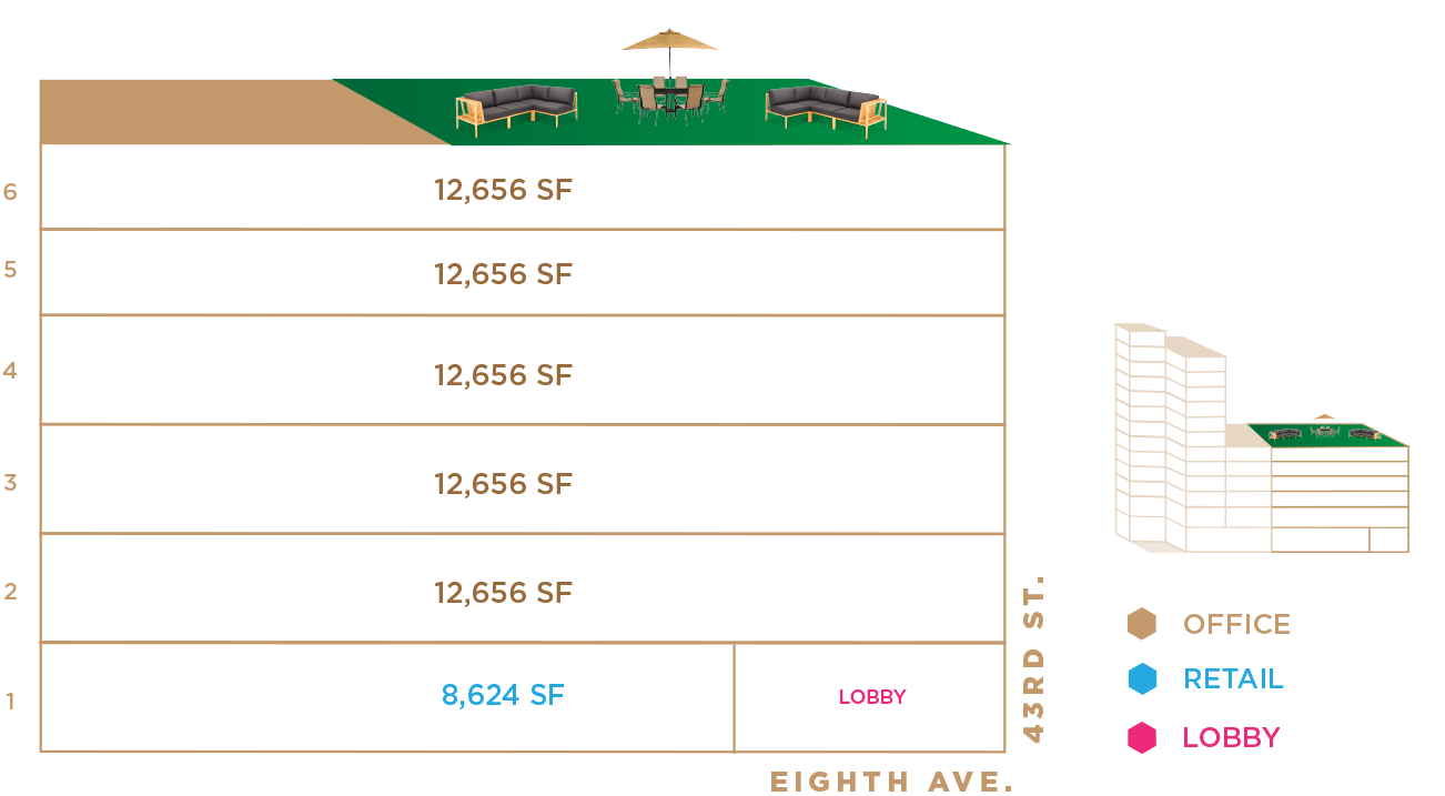 redeveloped office complex features new facade, windows, lobbies, mechanicals, elevators and the opportunity for a roof deck. A dynamic neighborhood provides world-class entertainment, unrivaled accessibility and a residential vibe. The Hive – the place to be.